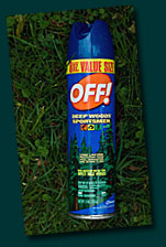 and horse flies, whose bites are much worse than a mosquito’s or black fly’s. Deep Woods Off Sportsmen is by far the best bug spray. Spray exposed skin on your arms and legs – leave nothing untreated. Wear a hat t keep mosquitos out of your hair. To apply insect repellant to your neck and face, spray it on the back of your hand and wipe it on. Avoid getting repellant near your eyes and lips. Also avoid getting repellent on the inside of your hands, as repellant can smudge plastics and paints.